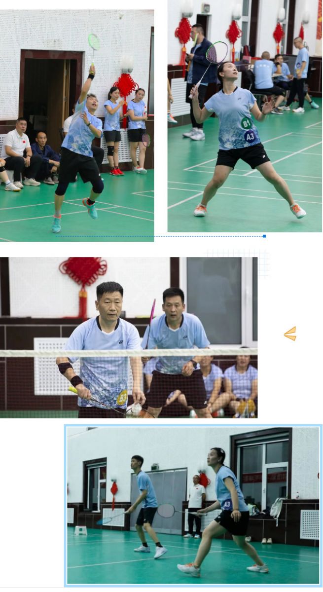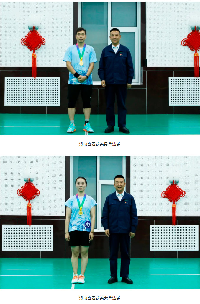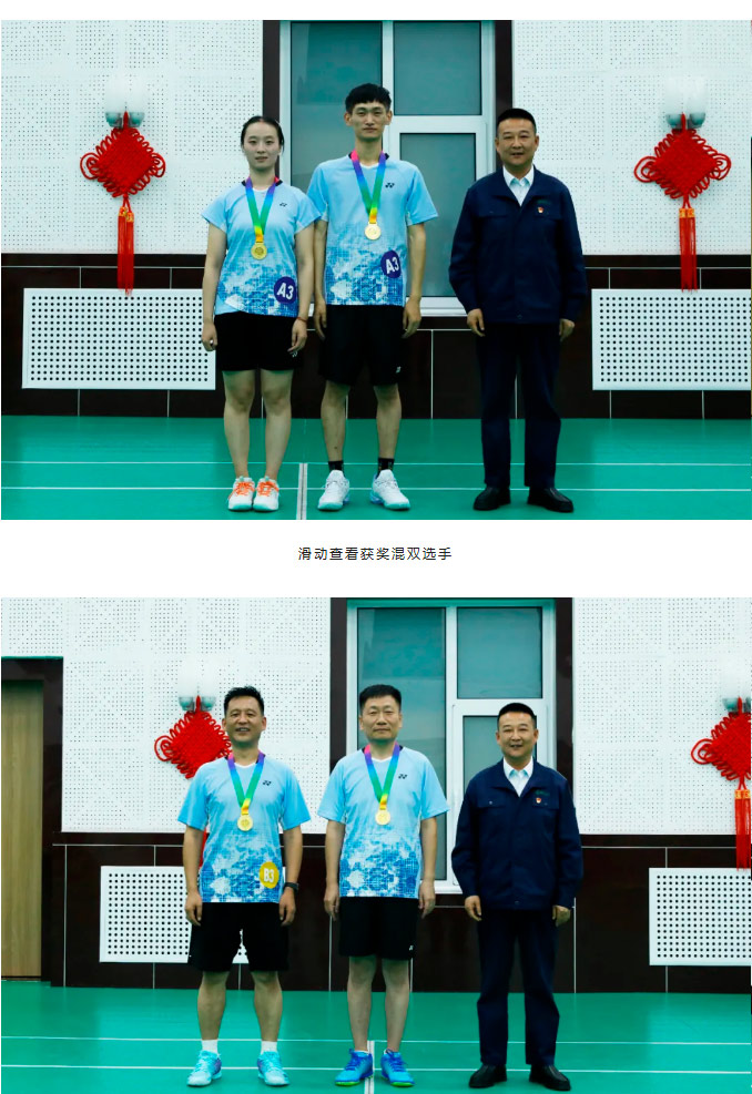 在羽毛球比賽中,經(jīng)過(guò)多輪比拼,各組別名次最終揭曉:男子單打:冠軍(李德飛),亞軍(連鵬),季軍(馮宇輝、連立欣)。女子單打:冠軍(裴芷?。?,亞軍(常艷萍),季軍(王凡、劉嬌)。混合雙打:冠軍(任澤凱/裴芷?。?,亞軍(趙瑞/常艷萍),季軍(張家興 / 劉嬌、郝勇/王利)。男子雙打:冠軍(汗水浸濕了衣衫,卻澆不滅大家的拼搏熱情;比分交替上升,更激發(fā)了選手們的斗志,用一次次精彩的攻防對(duì)決,贏得現(xiàn)場(chǎng)觀眾和候場(chǎng)選手的陣陣掌聲。