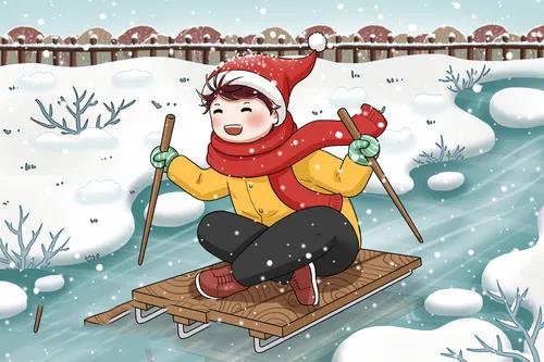 等冬天大凍的時候,村里小河也結(jié)了冰。這時就該重型武器——冰船出場了。那時候幾乎是人手一個,中午吃過午飯拖著冰船帶上火柴就都跑到河里滑冰船去了。雖然河里結(jié)了冰,但總有地方凍不實,有時候滑著滑著就連人帶冰船滑到冰窟窿里面去了。這個時候帶著的火柴就派上用場了,把濕透的衣服生火烤干才敢回家去呀!