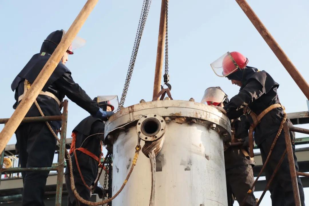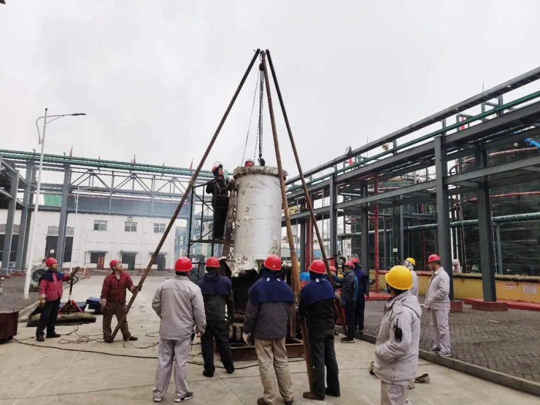 上午9時(shí),在分廠廠長岳偉鵬的親自指揮下,石墨冷卻器維修工作開始有條不紊的進(jìn)行,電儀、焊、鉗工分工明確。因?yàn)榈谝淮螜z修石墨換熱器,對(duì)內(nèi)部結(jié)構(gòu)不是特別了解,所以檢修工作相當(dāng)于是摸索中前進(jìn),對(duì)不懂的問題及時(shí)請教廠家技術(shù)人員或是查找相關(guān)資料。2月29日22時(shí),經(jīng)過打壓試漏,終于完成對(duì)換熱器的拆檢維修,目前運(yùn)行正常。在整個(gè)維修過程中,分廠全體干部緊緊盯守安全、票證、質(zhì)量、進(jìn)度四個(gè)工作要求,敢于創(chuàng)新,攻堅(jiān)克難。