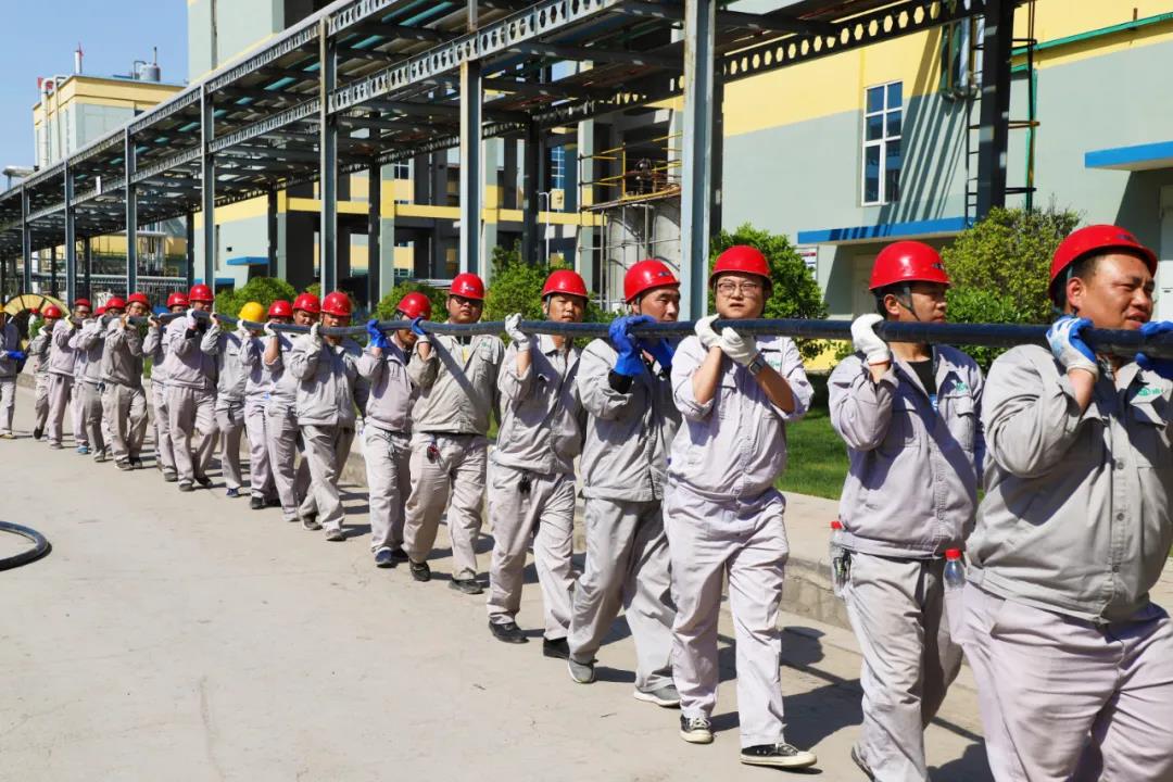 拉電纜干部員工齊上陣,“拉、拽、送”不需言語(yǔ),只要幾個(gè)動(dòng)作就配合默契,圓滿完成,揮汗如雨,卻面帶微笑,多么可親的一群人。拔河比賽,隊(duì)員們咬緊牙關(guān),腳蹬地,哨聲一響,個(gè)個(gè)精神振奮,斗志昂揚(yáng),敢拼命,不服輸,多么可愛(ài)的一群人。“一件事,一群人,一起拼,一定贏”,這就是榆化精神。