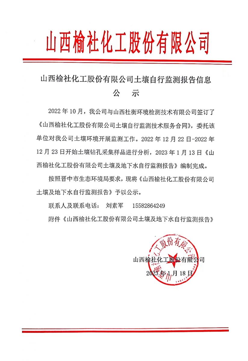 榆社化工土壤和地下水自行監(jiān)測2022年報(bào)告