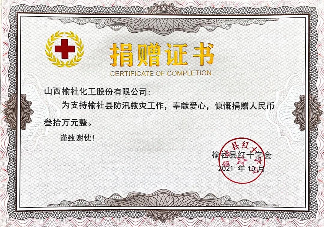 近日,“山西暴雨”登上熱搜,塌方、決堤、滑坡,一條條信息牽動(dòng)著全國(guó)人民的心。榆社縣也在此輪降雨中遭受災(zāi)害,多地出現(xiàn)塌方,部分群眾被迫轉(zhuǎn)移。災(zāi)難面前同“榆”相助。10月15日,公司向榆社縣紅十字會(huì)捐款30萬(wàn)元,為我縣防汛救災(zāi)和災(zāi)后重建貢獻(xiàn)企業(yè)力量。