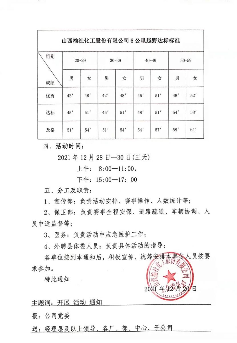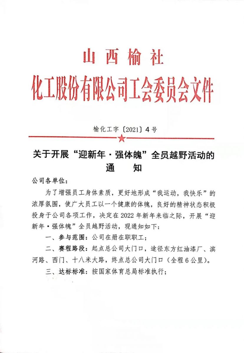 榆化公司關(guān)于開(kāi)展“迎新年 · 強(qiáng)體魄”全員越野活動(dòng)的通知