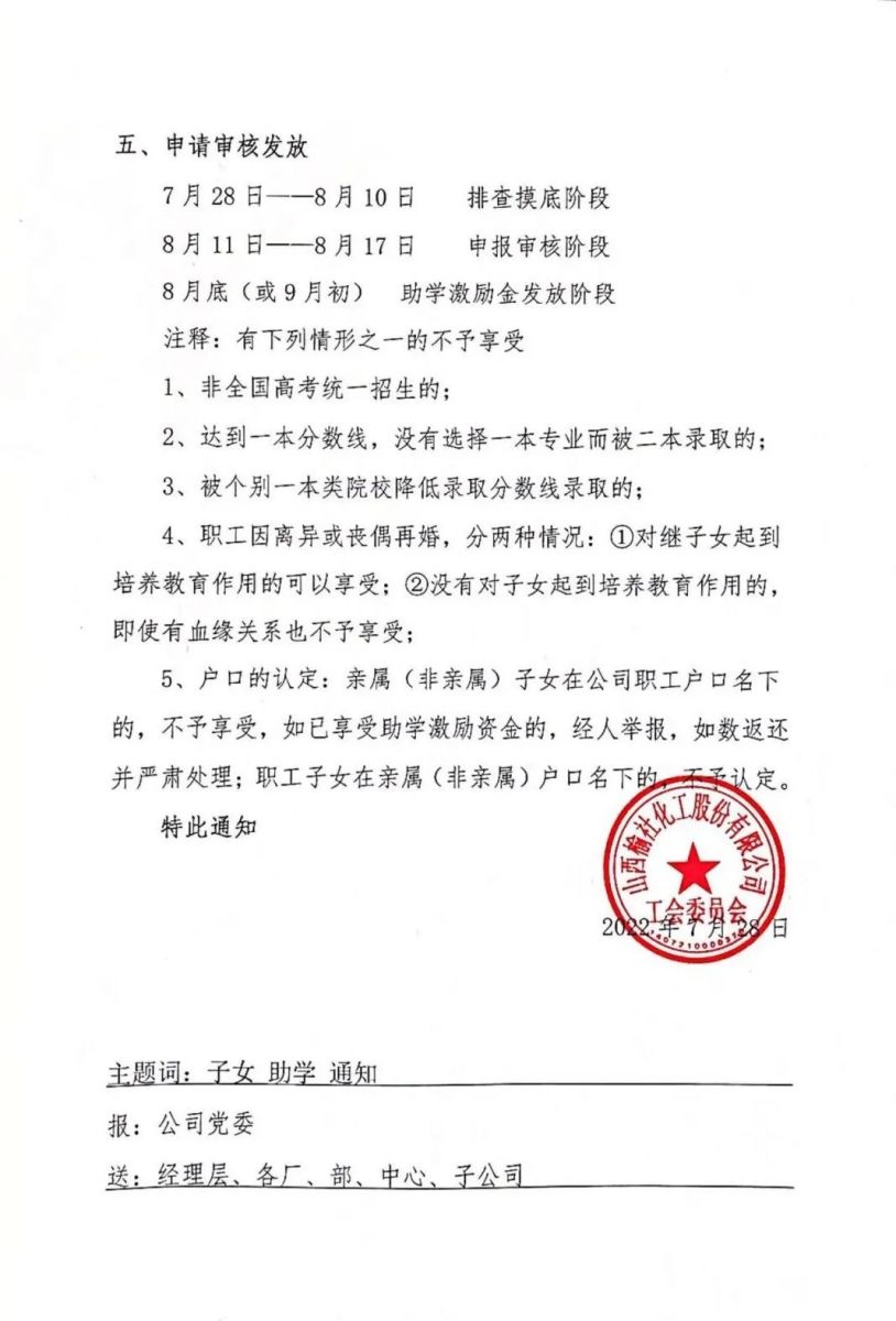 7月28日,隨著高考錄取通知書陸續(xù)送達(dá)考生手中,公司2022年度職工子女助學(xué)激勵(lì)活動(dòng)再度開啟。一直以來,公司始終秉承“為員工服務(wù)”的宗旨,緊密圍繞“三個(gè)放在心上”重要戰(zhàn)略思想,積極踐行企業(yè)擔(dān)當(dāng),助學(xué)激勵(lì)就是公司心系員工、扎扎實(shí)實(shí)為員工辦實(shí)事的一項(xiàng)重要民生舉措。