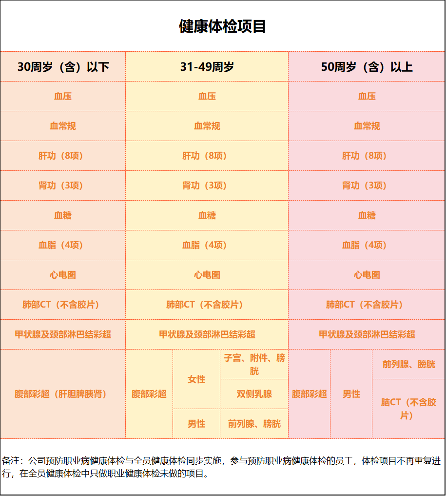 全員健康體檢根據(jù)年齡段分周期動(dòng)態(tài)實(shí)施。