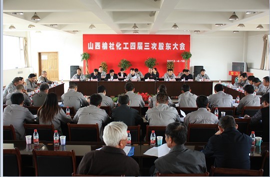 2013年4月16日上午,山西榆社化工股份有限公司在五樓會議室隆重召開第四屆第三次股東大會,公司董事會、監(jiān)事會、股民代表出席會議。