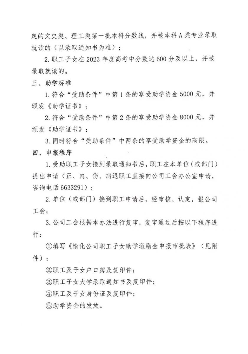 7月20日,隨著各高校錄取通知書陸續(xù)發(fā)放,公司下發(fā)了《關于開展2023年度職工子女助學激勵活動的通知》,對職工子女助學激勵的認定范圍、受助條件、資助標準、申報程序等進行了詳細說明,2023年度職工子女助學激勵活動正式開始。