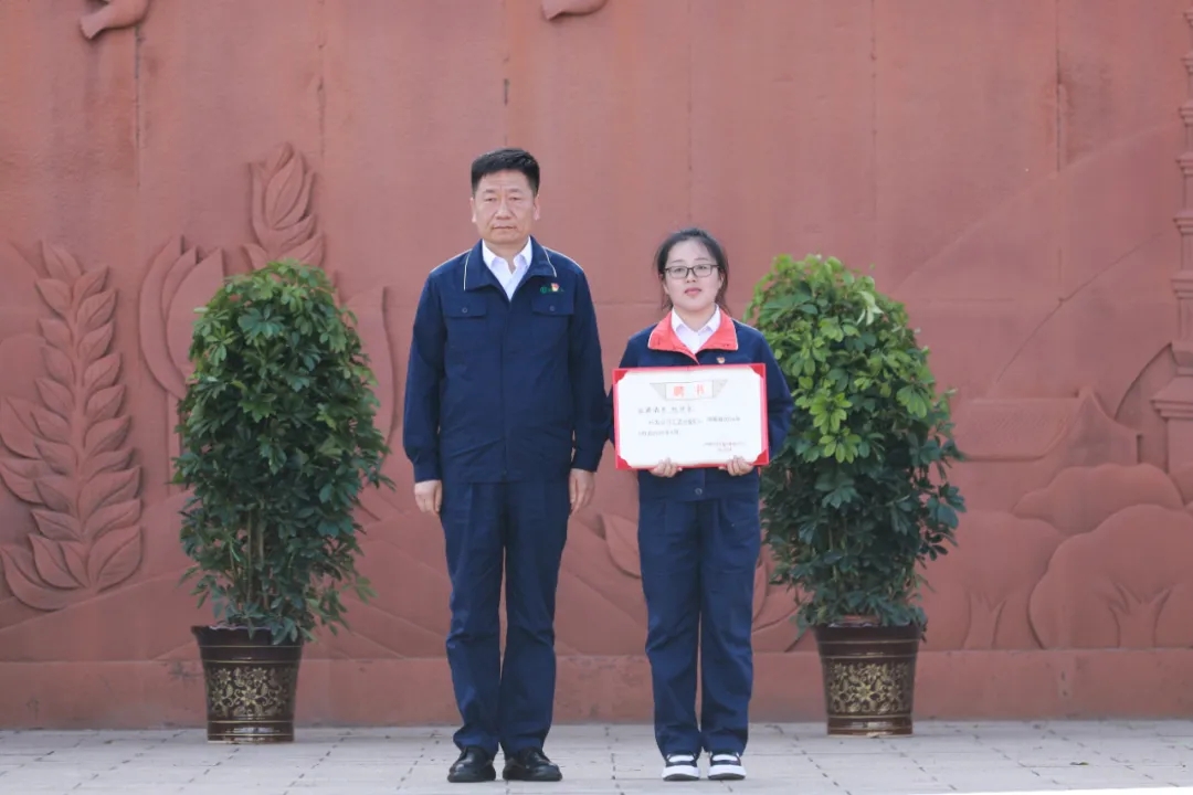黨委副書記、常務(wù)副總經(jīng)理劉洋為勞模頒發(fā)榮譽(yù)證書