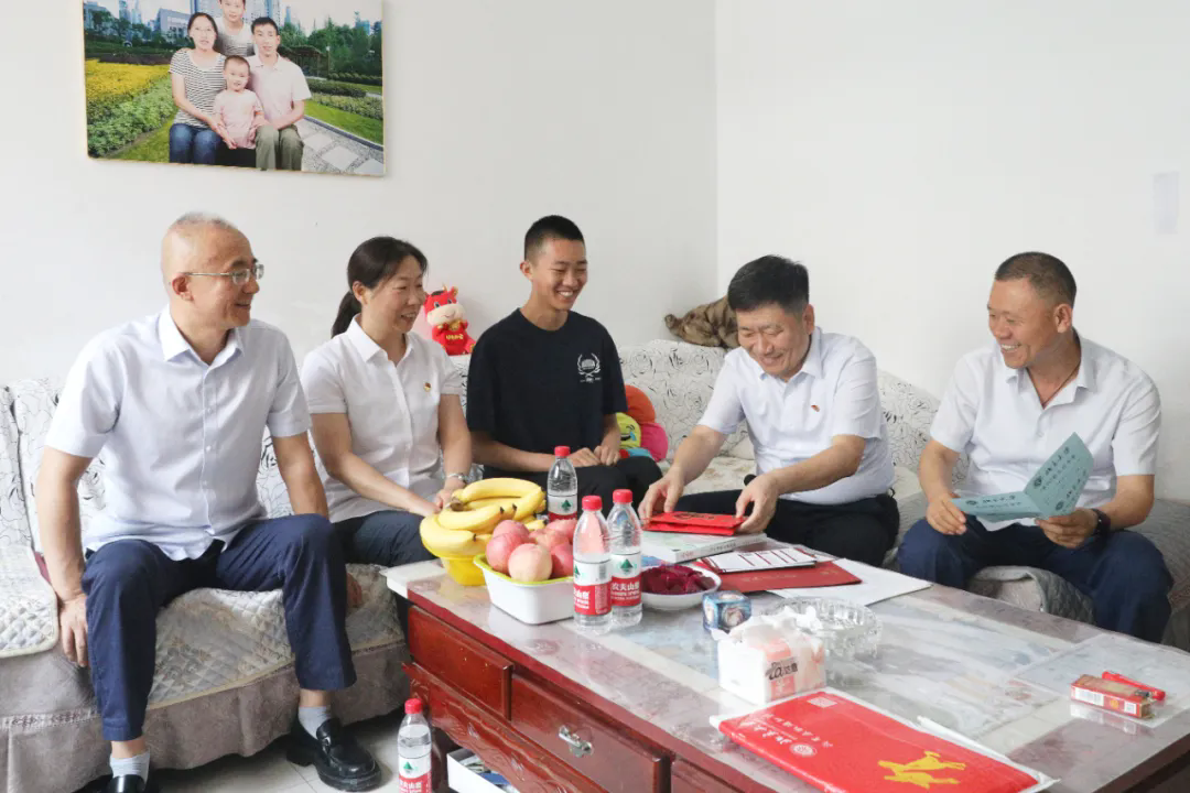 在2024年度高考中,榆化子弟李昌昊勇奪榆社中學(xué)理科狀元,并成功被北京大學(xué)錄取。為獎勵(lì)其在高考中的優(yōu)異表現(xiàn),激勵(lì)廣大榆化子弟珍惜韶華、刻苦學(xué)習(xí)、奮發(fā)向上、報(bào)效國家,7月31日,公司黨委書記、董事長楊柳青,黨委副書記、副董事長張國艷,黨委副書記、常務(wù)副總經(jīng)理劉洋,副總經(jīng)理張楊前往榆化職工李雪波家中進(jìn)行慰問。