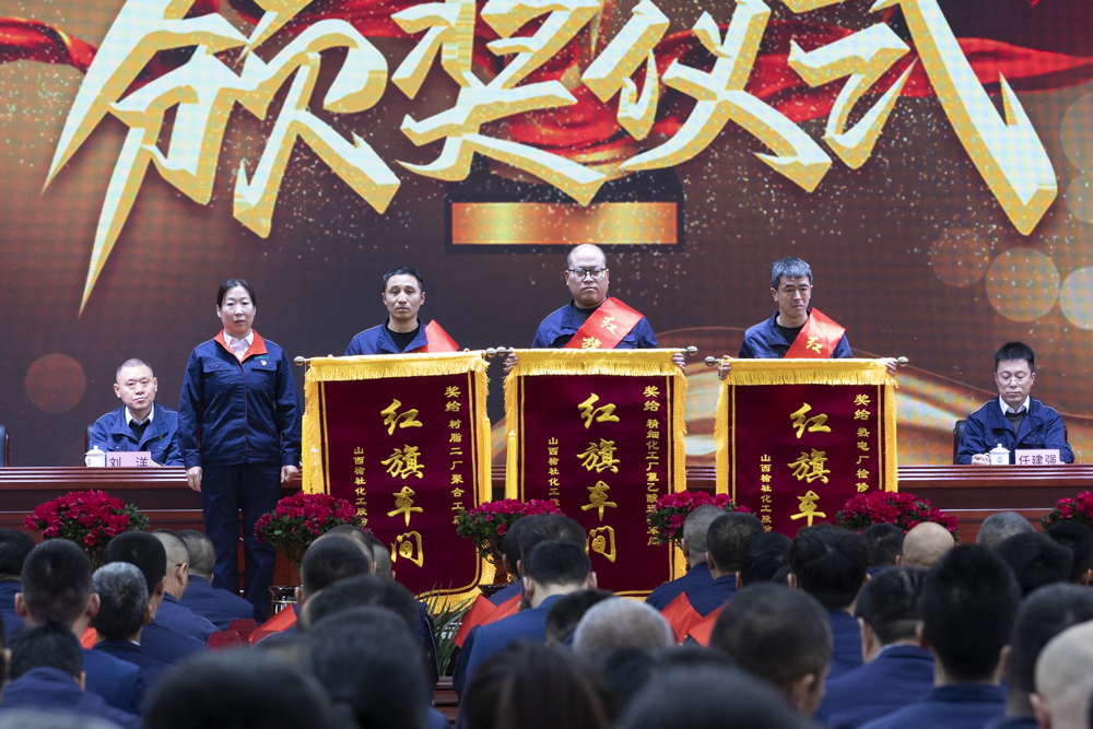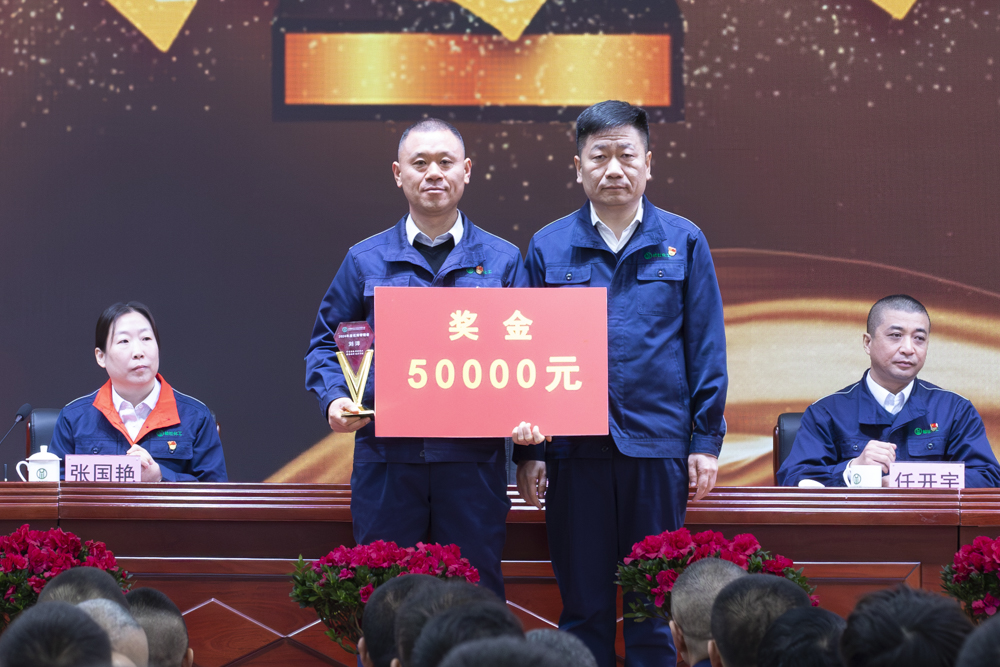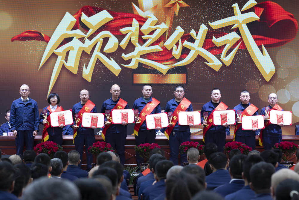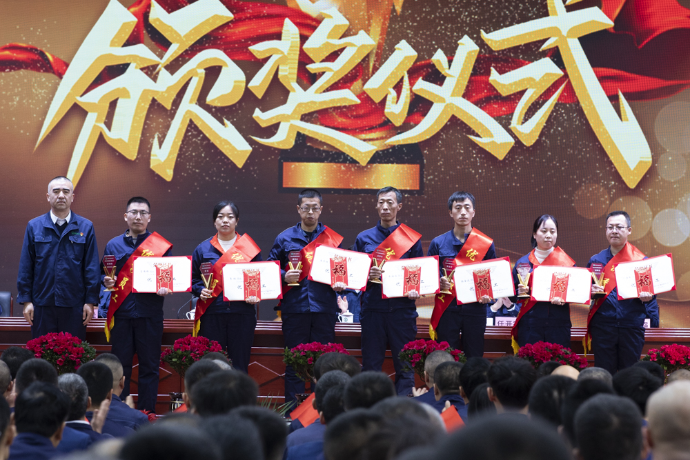 大會對2024年度各條戰(zhàn)線上工作業(yè)績顯著、貢獻突出的47名優(yōu)秀員工、14個先進集體,在晉中市“五小競賽”中獲獎的8名員工、榮獲發(fā)明專利的2名員工,在保障生產(chǎn)安全穩(wěn)定運行中做出突出貢獻的管理團隊及個人進行了隆重表彰。