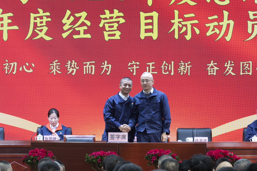 最后,楊柳青發(fā)表了重要講話,對過去一年來取得的成績給予充分肯定。他指出,2024年,我們走得很艱辛,有市場低迷的無奈,也有改革創(chuàng)新、攻堅克難的不易。在市場持續(xù)低迷的嚴峻形勢下,全體干部員工精誠團結(jié)、迎難而上、主動擔當,明確制度、人才、文化三大體系建設(shè),突出強化管理主基調(diào),推動安全、生產(chǎn)、經(jīng)營等基礎(chǔ)管理規(guī)范化、科學化,基本盤更加牢固,發(fā)展腳步更加扎實,圓滿完成生產(chǎn)經(jīng)營各項既定目標,保持了穩(wěn)中有進、穩(wěn)步提升。