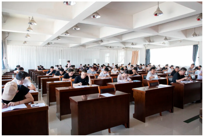考試現(xiàn)場(chǎng)秩序井然。工作人員提前到崗,做好各項(xiàng)準(zhǔn)備工作,考場(chǎng)引導(dǎo)、身份核對(duì)、入場(chǎng)檢測(cè)、簽到入座,每個(gè)步驟都嚴(yán)謹(jǐn)細(xì)致??忌鷤儑?yán)格遵守考場(chǎng)規(guī)則,按時(shí)入場(chǎng),認(rèn)真作答??荚囘^程中,監(jiān)考人員認(rèn)真履職,精心監(jiān)考,保證考試公正有序。公司黨委書記、董事長楊柳青等領(lǐng)導(dǎo)親臨考場(chǎng)巡考。