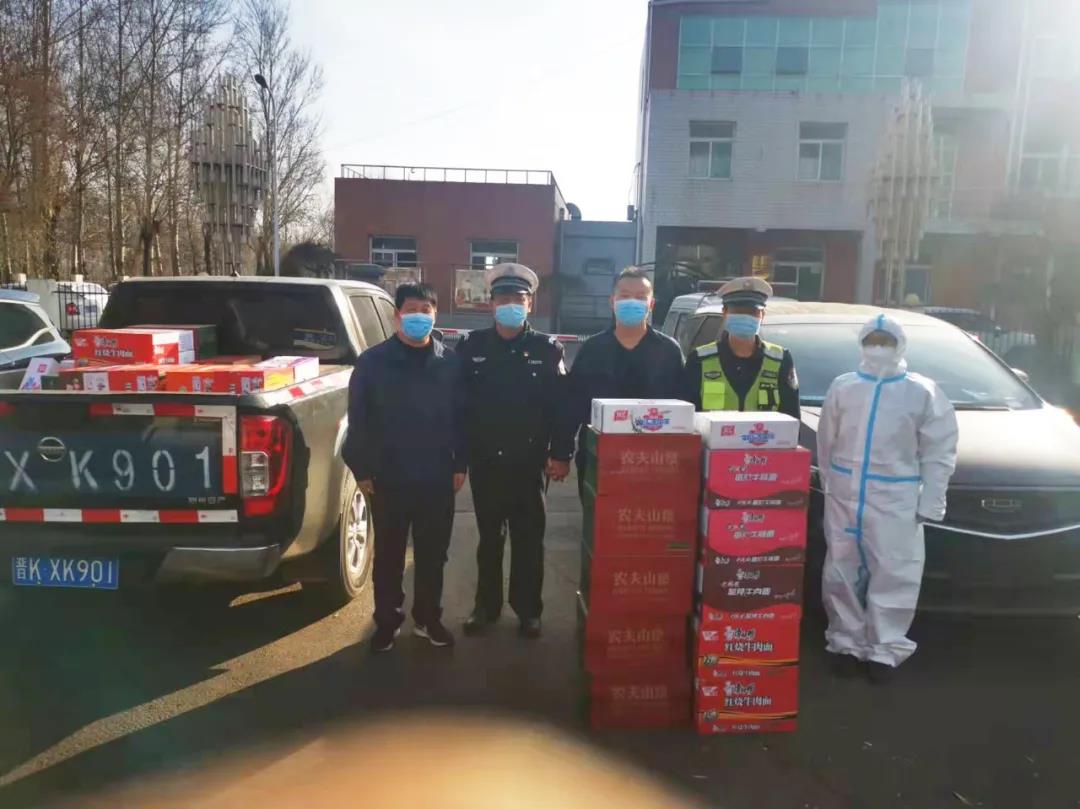 遠(yuǎn)安物流安全科科長(zhǎng)周杰、市場(chǎng)科科長(zhǎng)岳二軍分別帶隊(duì)前往榆社高速北口、高速南口、高速東口慰問(wèn)防疫一線的執(zhí)勤交警、醫(yī)護(hù)人員,為他們送去了礦泉水、火腿腸、方便面等食物,為疫情防控提供了強(qiáng)有力的物資保障。