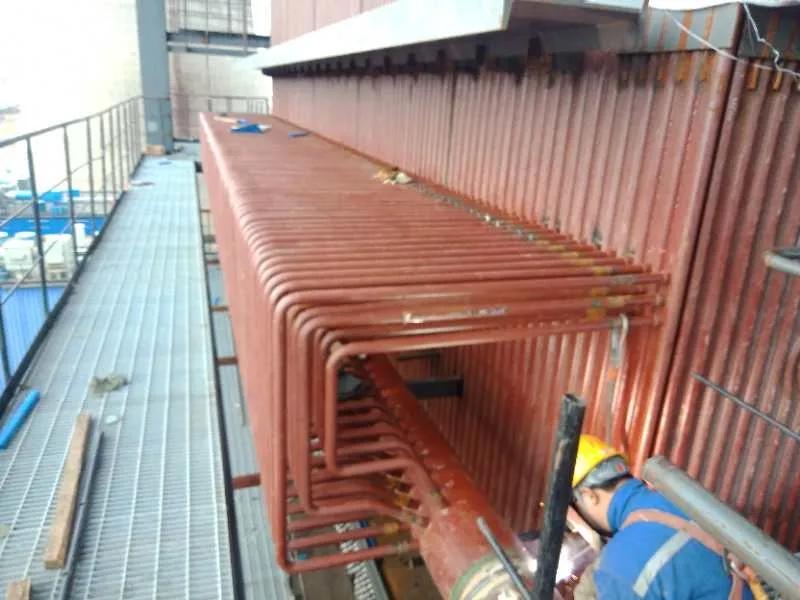 下降管與水冷壁、水冷屏連接管全部組裝完成,正在焊接