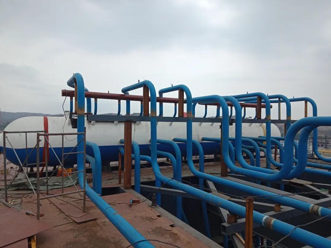 上下級省煤器全部就位,準備安裝上級省煤進口集箱