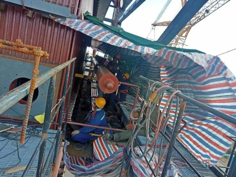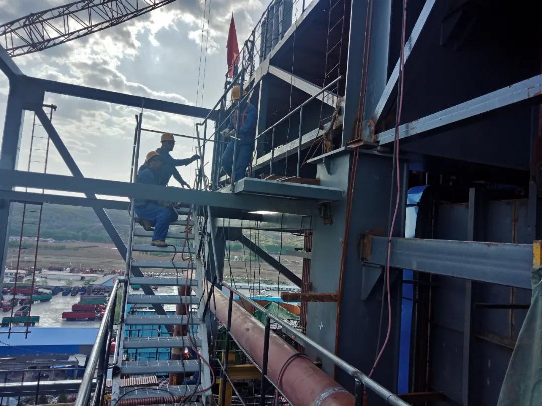 南面低過(guò)出口與過(guò)熱屏進(jìn)口連接管、南面過(guò)熱屏出口與高過(guò)進(jìn)口連接管已安裝完成