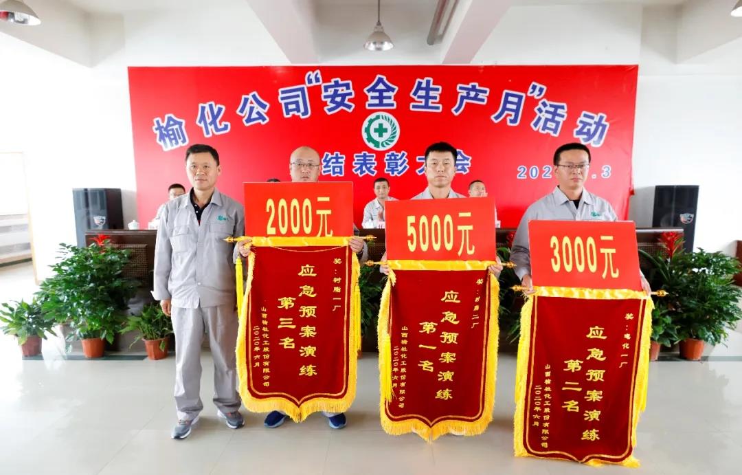 第二項(xiàng)是頒獎(jiǎng)儀式,對(duì)“安全生產(chǎn)月”活動(dòng)中涌現(xiàn)出的先進(jìn)個(gè)人和先進(jìn)集體進(jìn)行表彰獎(jiǎng)勵(lì)。其中,應(yīng)急預(yù)案演練集體獎(jiǎng)前三名依次是樹(shù)脂二廠、電化一廠、樹(shù)脂一廠,各頒發(fā)錦旗一面,分別獎(jiǎng)勵(lì)獎(jiǎng)金5000元、3000元、2000元;綜合排名集體獎(jiǎng)為樹(shù)脂二廠第一名、電化二廠和精細(xì)化工廠并列第二名,第三名為子公司榆化精細(xì)化,頒發(fā)獎(jiǎng)牌一塊,分別獎(jiǎng)勵(lì)獎(jiǎng)金20000元、15000元、10000元。