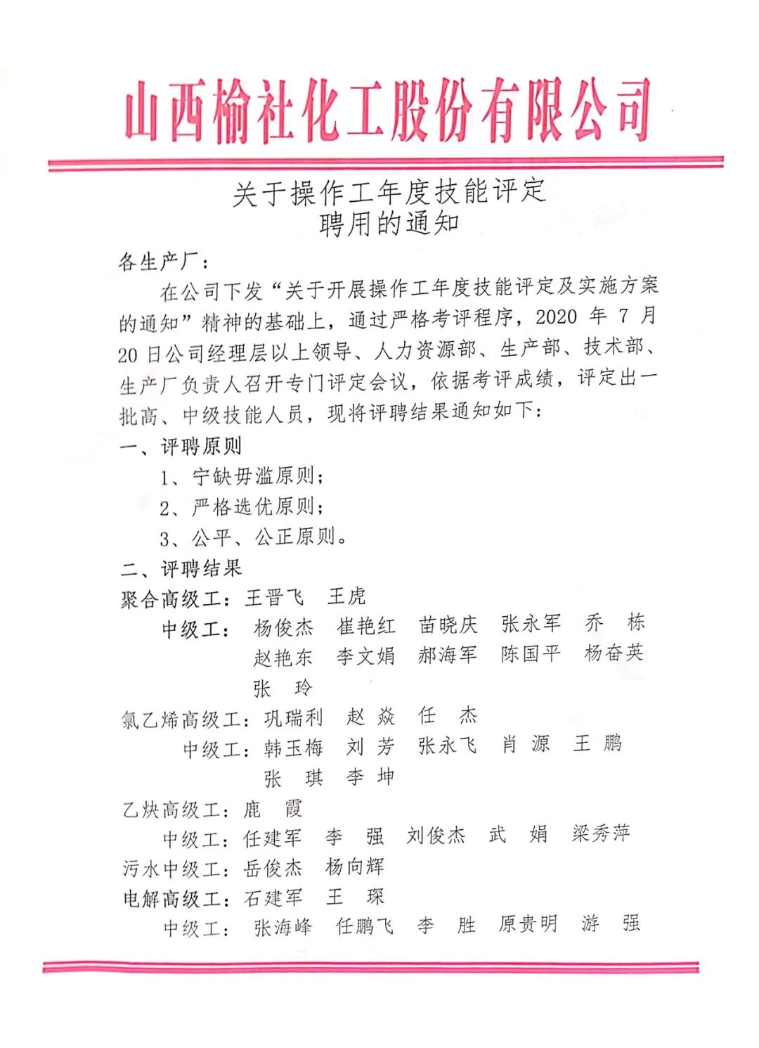 7月20日,公司召開操作工中、高級技能評定專題會議。公司董事長劉俊,副董事長、財務總監(jiān)楊柳青,總工程師田建平,考評組組長常耀剛,經(jīng)理層領導,技術部、生產(chǎn)部、子公司、生產(chǎn)廠負責人參加會議。會議由人力資源總監(jiān)陳緒明主持。
