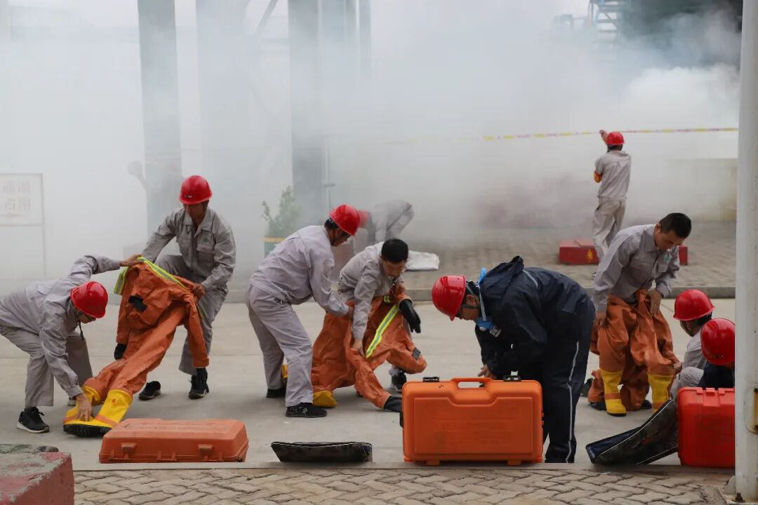演練中,各廠領(lǐng)導(dǎo)高度重視,緊密結(jié)合生產(chǎn)實際,從實戰(zhàn)出發(fā)制定了事故演練方案,精心組織安排開展預(yù)案演練。參與人員認真負責(zé),各司其職,規(guī)范佩戴勞動防護用品,積極進行搶險救援。從事故發(fā)生、事故上報、人員疏散、安全警戒、傷員搜救、搶險搶修、環(huán)境檢測等一直到善后處置均有條不紊的進行。